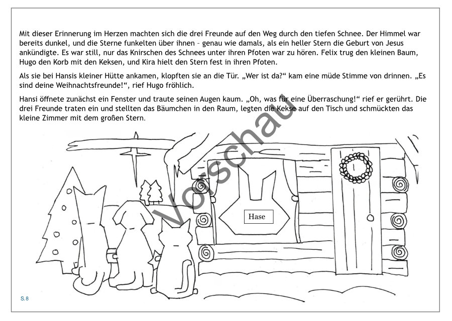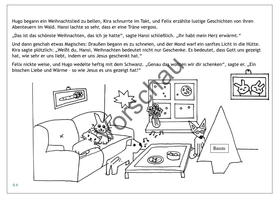 Die Bewohner des Dorfes freuten sich schon auf die Festtage, doch es gab drei besondere Freunde, die noch viel mehr vorhatten: ein Fuchs namens Felix, ein Hund namens Hugo und eine Katze namens Kira. Die drei lebten in einer kleinen Holzhütte am Waldrand und verbrachten die kalten Wintertage immer zusammen.
